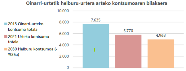 2021eko kontsumoa 5.770 MWh-koa izan zela kontuan izanda, 807 MWh-koa da 2022-2030 aldian EJPOren neurrien bitartez lortu beharreko gutxieneko kontsumo-murrizketa.